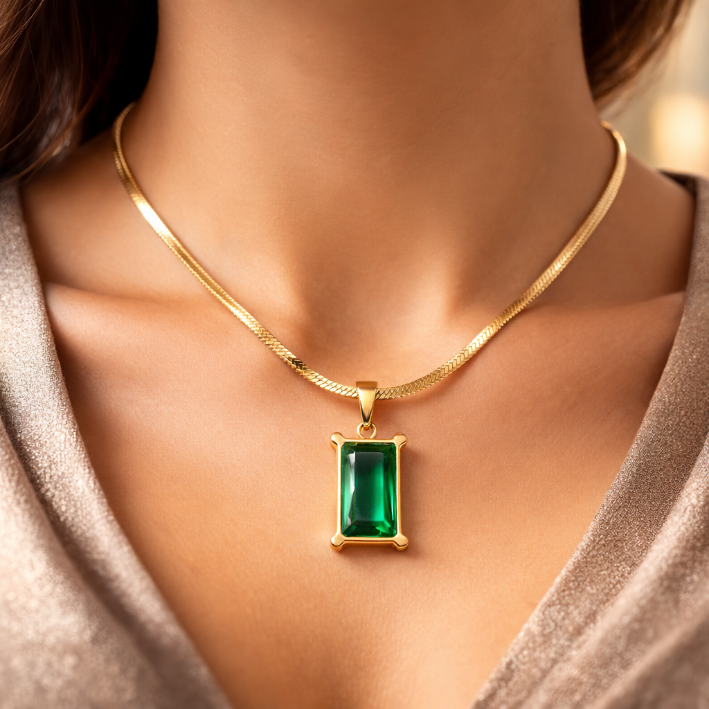 📌 FAQ – Emerald Green Rectangle Pendant Necklace