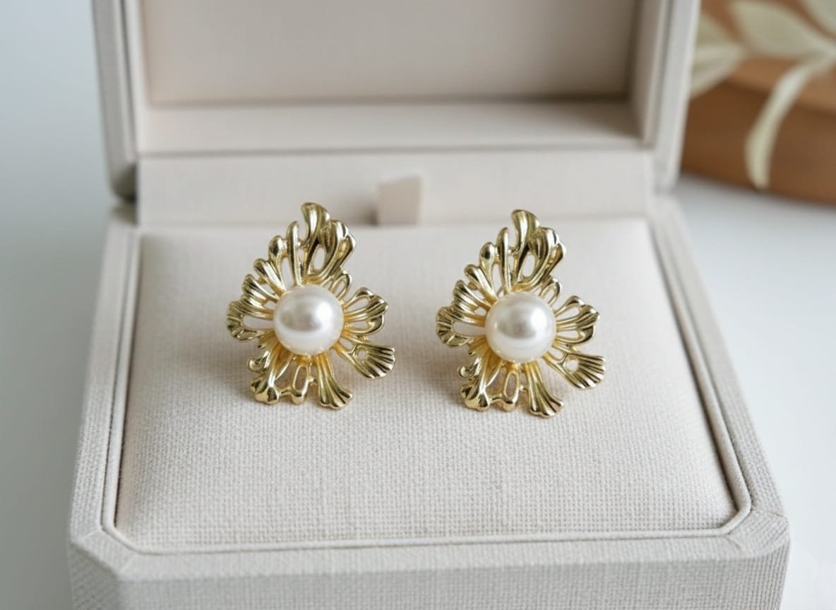 To preserve the delicate beauty of your Gold Floral Pearl Stud Earrings: