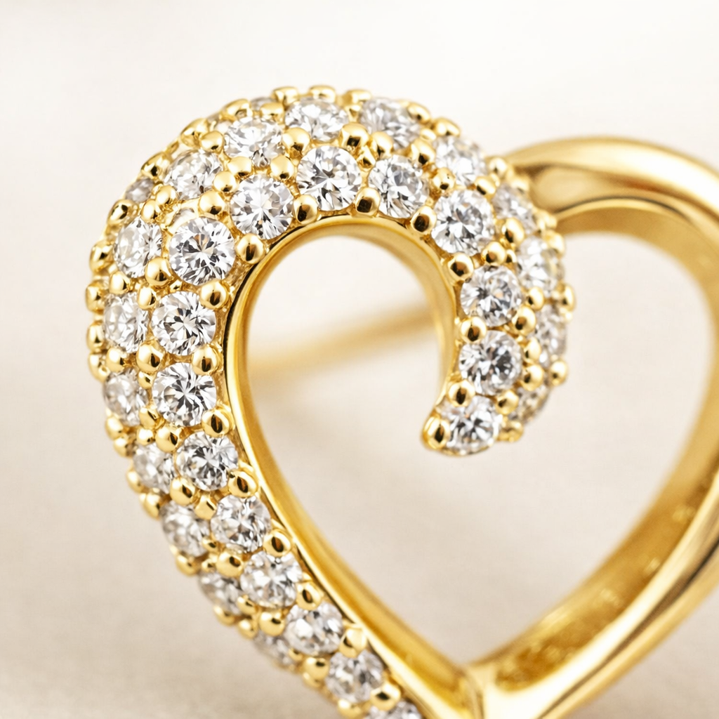 • Crystal Embellishment: Sparkling crystals accent the heart outline for subtle brilliance