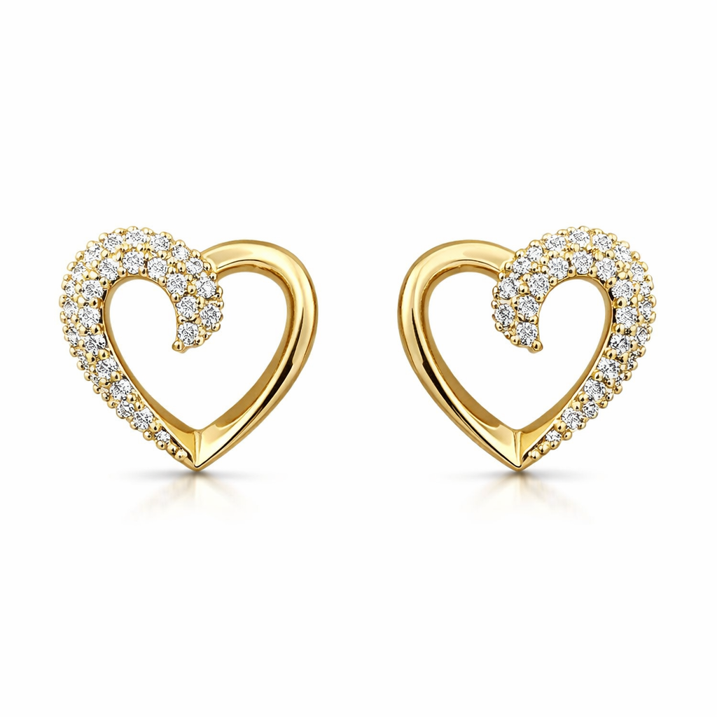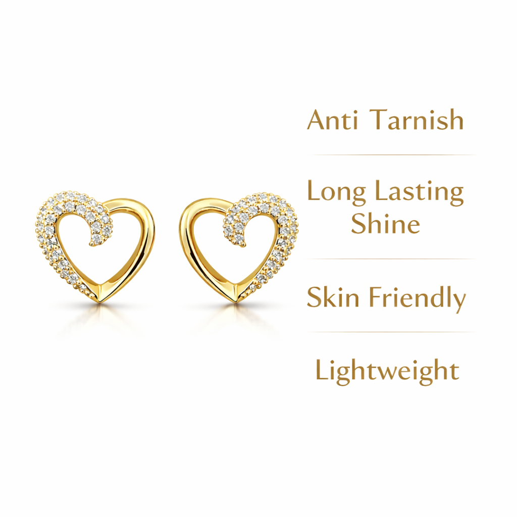 Elegant open heart stud earrings featuring a romantic open-heart design embellished with sparkling crystals. Crafted in premium gold tone with anti-tarnish finish for lasting shine and comfort.